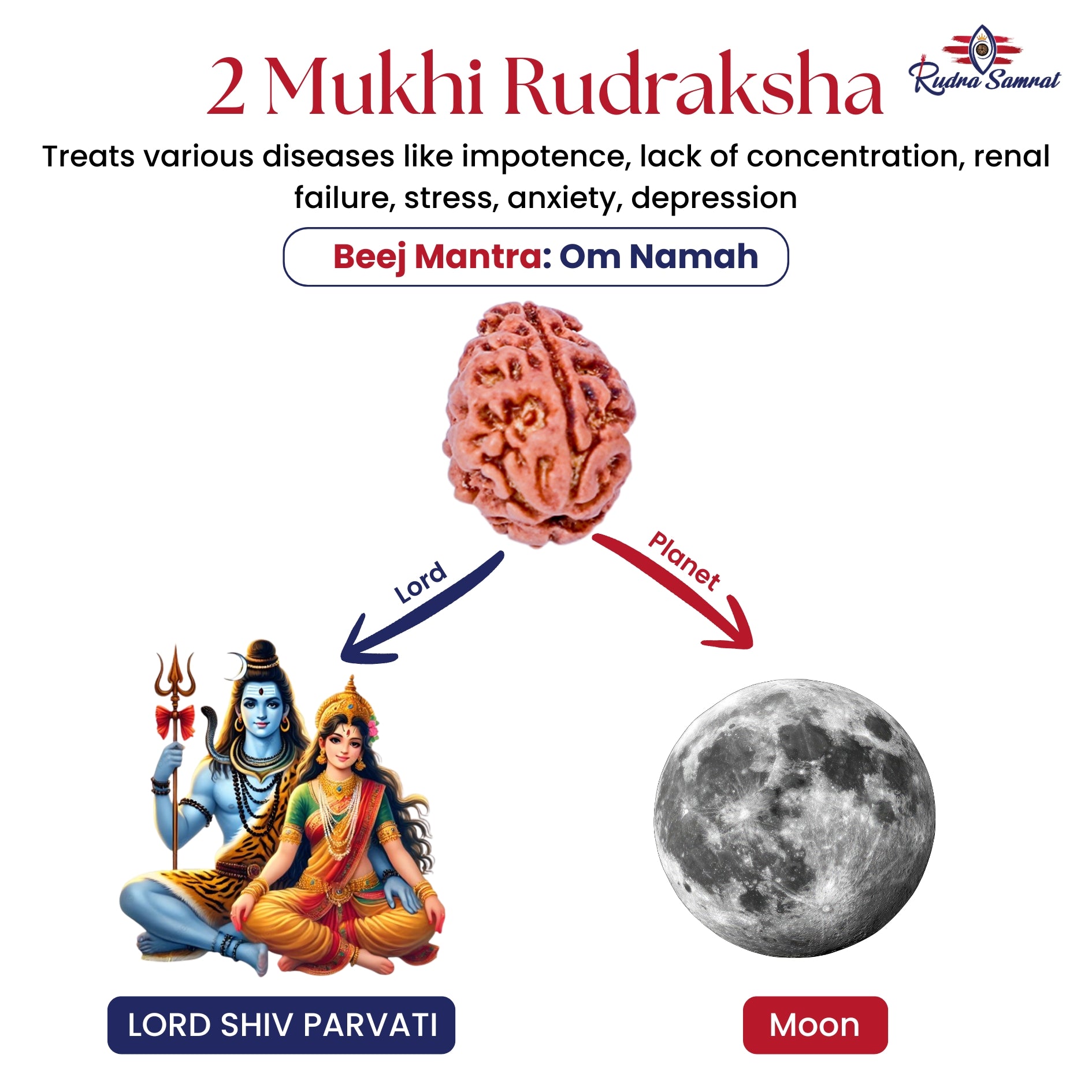 - 2 Mukhi Rudraksha is a protection shield from external negative vibes.