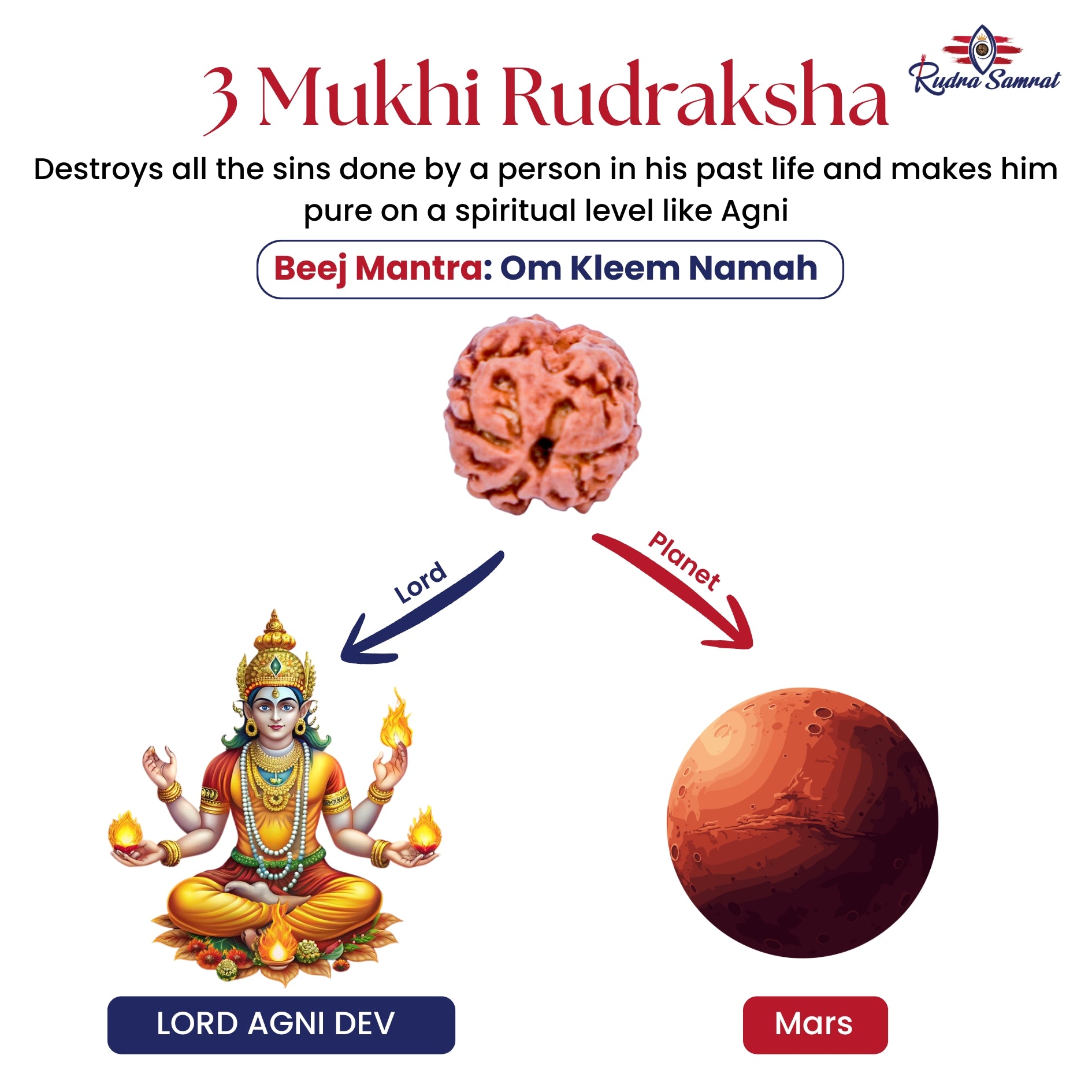 Benefits of wearing 3 Mukhi Rudraksha: