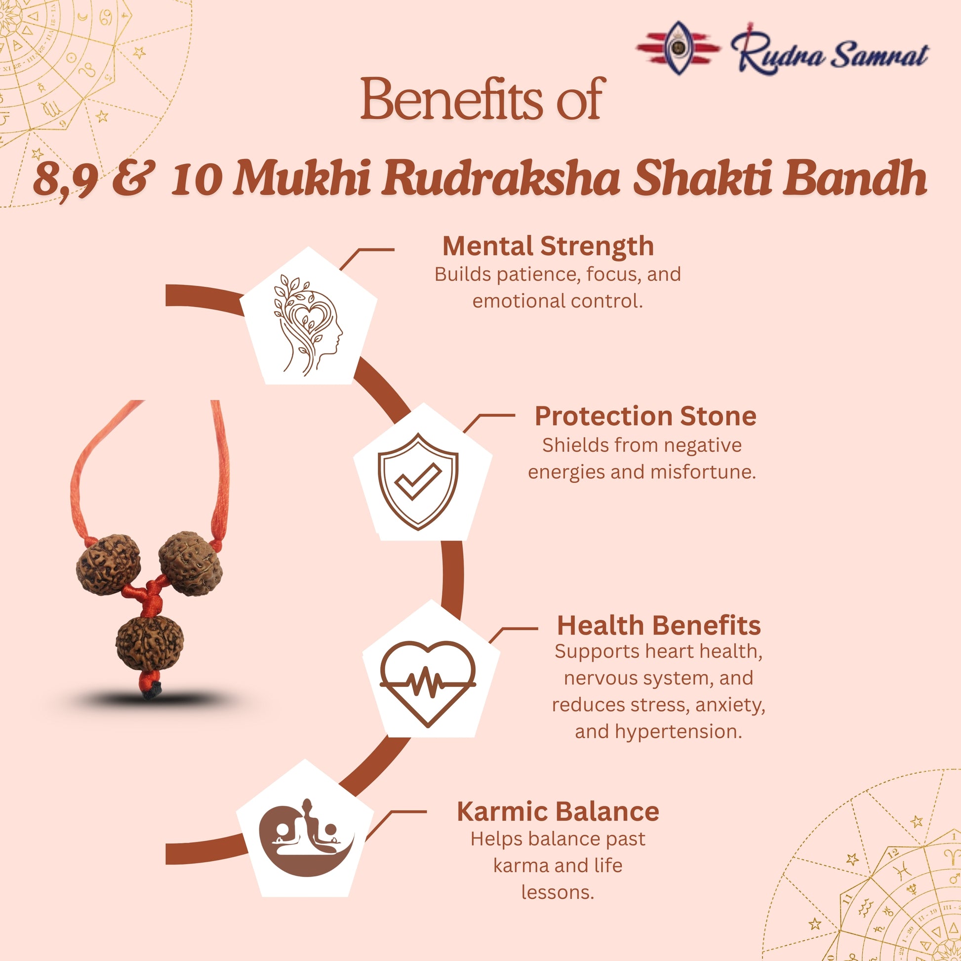 The Shakti Bandh symbolizes divine balance – Ganesh clears the path, Durga empowers with strength, and Vishnu safeguards with protection. It acts as a complete protective shield (Raksha) for the wearer and family.
